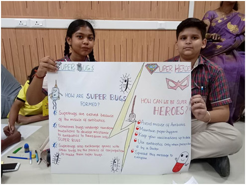 One of the most urgent healthcare challenges of this century is the emergence of antibiotic resistance. Yet it stays much undiscussed among the public. Through the Superheroes against Superbugs initiative we have developed lesson plans for conducting workshops with secondary school students of the country, and conducted workshops with students in the city. The idea is to create champions among the soon to be decision makers of antibiotic usage. We also believe this age group can influence the behaviour of the adults around them in many ways. We have also started training potential trainers in other cities.