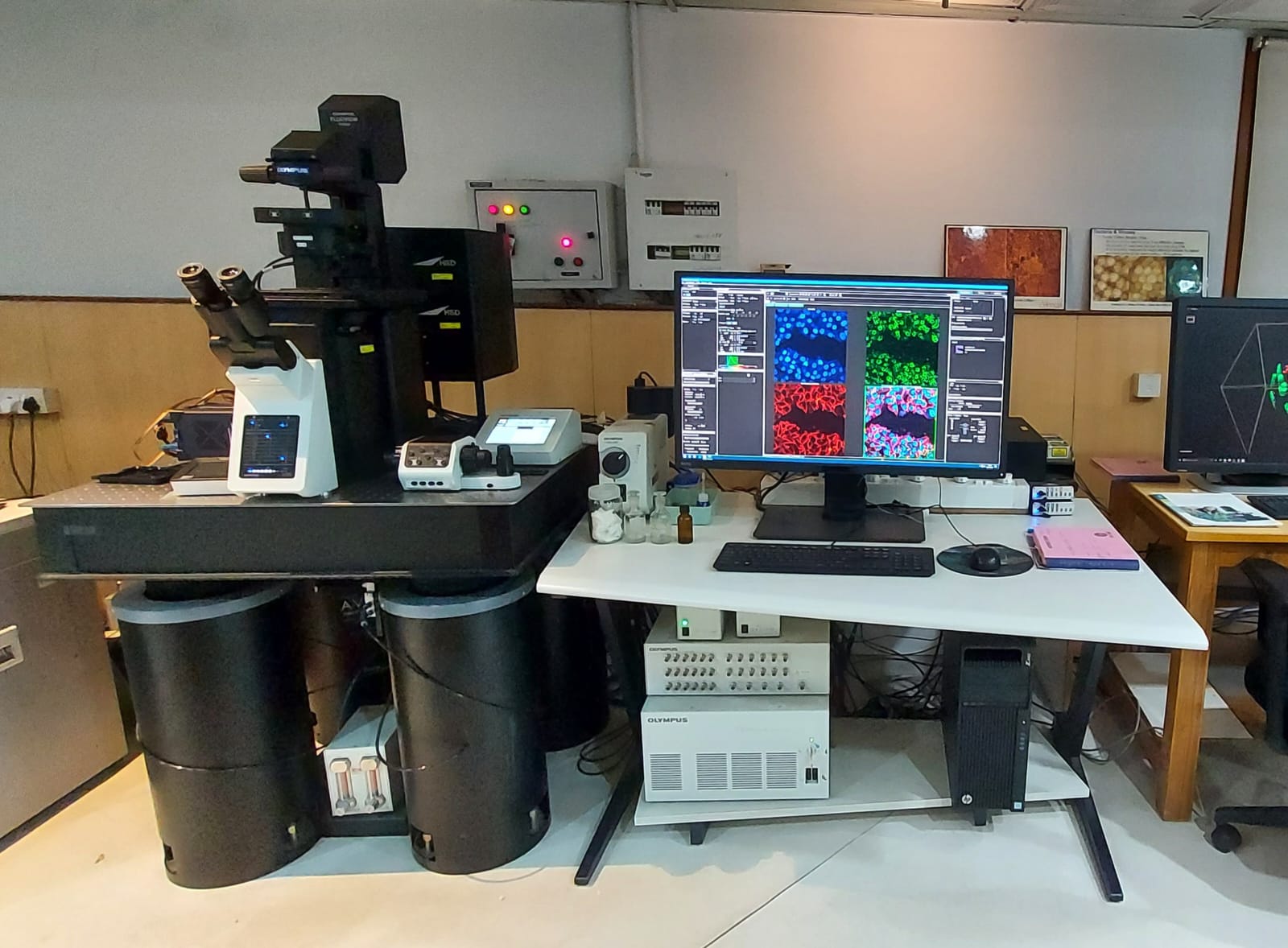సెంటర్ ఫర్ సెల్యులార్ అండ్ మాలిక్యులర్ బయాలజీ (CCMB)లోని అడ్వాన్స్డ్ మైక్రోస్కోపీ అండ్ ఇమేజింగ్ ఫెసిలిటీ (AMIF), దేశంలోని మొట్టమొదటి లేజర్ స్కానింగ్ కాన్ఫోకల్ మైక్రోస్కోప్లలో ఒకదానితో స్థాపించబడింది. మా అత్యాధునిక సదుపాయం, కాన్ఫోకల్ మరియు మల్టీ-ఫోటాన్ మైక్రోస్కోప్లు, ఫ్లోరోసెన్స్ కోరిలేషన్ స్పెక్ట్రోస్కోప్, అటామిక్ ఫోర్స్ మైక్రోస్కోప్, సూపర్-రిజల్యూషన్ మైక్రోస్కోప్లు, రామన్ మైక్రోస్కోప్లు, లైట్ షీట్ మైక్రోస్కోప్లు, లైవ్ సెల్ ఇమేజింగ్ సిస్టమ్, TIRF మైక్రోస్కోప్లు, మరియు డీకన్వల్యూషన్ సాఫ్ట్వేర్, హై-స్పీడ్, మరియు 3D స్టీరియో ఇమేజింగ్ సామర్థ్యాలు కలిగిన వివిధ అప్రైట్ మరియు ఇన్వర్టెడ్ ఫ్లోరోసెన్స్ మైక్రోస్కోప్లతో సహా విస్తృత శ్రేణి బయోలాజికల్ ఇమేజింగ్ టెక్నిక్లను అందిస్తుంది. ఈ సదుపాయం CCMB పరిశోధకులకు మరియు బయటి వినియోగదారులకు అందుబాటులో ఉంటుంది. మీరు మమ్మల్ని CCMB ప్రధాన క్యాంపస్లోని రూమ్ నెం. C-104లో కనుగొనవచ్చు. పరికరాలకు సంబంధించిన వివరణాత్మక సమాచారం కోసం, దయచేసి ‘ఎక్విప్మెంట్’ ట్యాబ్ను చూడండి.